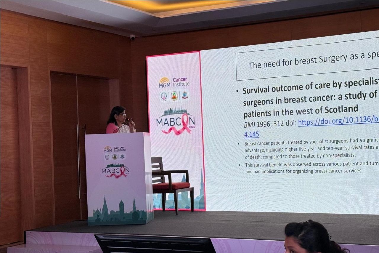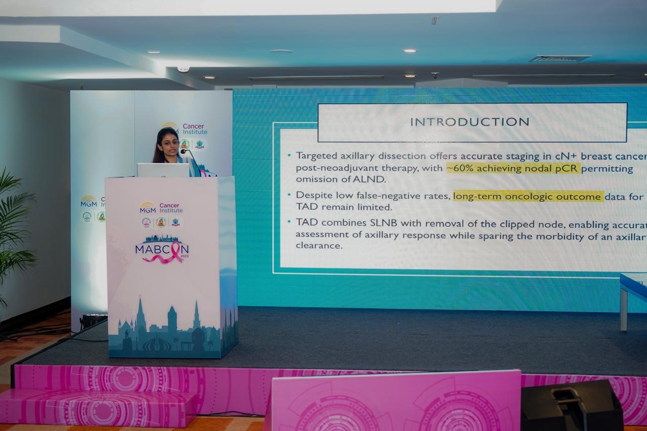 The team had an enriching and memorable experience At MABCON 2025. Dr. Selvi Radhakrishna delivered a talk and shared insights from her experience with the One Stop Breast Center. Dr. Balapriya presented a case on pregnancy-associated breast cancer during the MDT session, while Dr. Saranya Parthasarathy delivered a rapid review of a paper published in the Annals of Surgical Oncology.