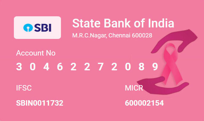 Your sponsorship helps us to provide the practical treatment, emotional and social support for the needed. Donations can be made in favour of Sharana Breast Cancer Relief and Research Foundation. Donations are eligible for exemption from Income Tax under 80G DIT (E)No.2(719)09-10 dated 26.05.2010